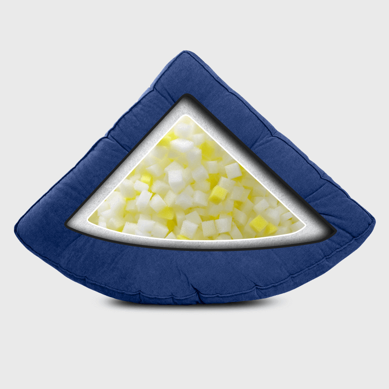 Our primary objective in designing this triangular cushion was to establish a personal haven that fosters a sense of security. For many individuals, the physical presence of walls in a corner provides a reassuring feeling of support. This secure space allows individuals to engage in quiet contemplation, immerse themselves in reading, or simply unwind and enjoy solitude.