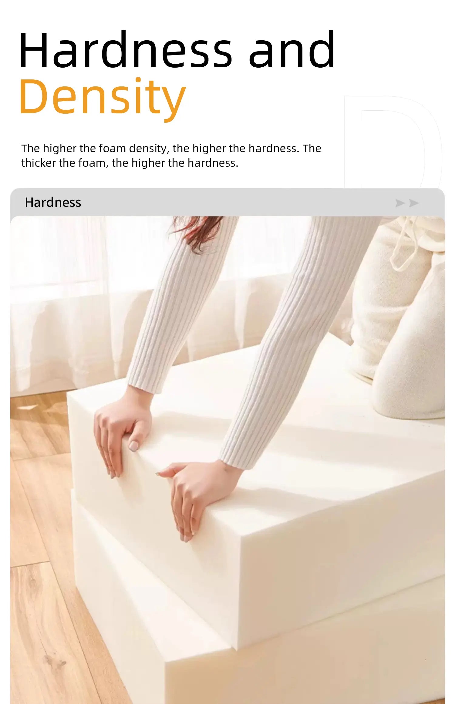 Rulaer cushions are built with a firm 90D high-density foam, providing superior support. For optimal comfort, we recommend a thickness of 3-4 inches. This thickness ensures that you won't feel the chair beneath. The appropriate thickness of the cushion depends on the user's weight: we recommended to use thicker cushions.