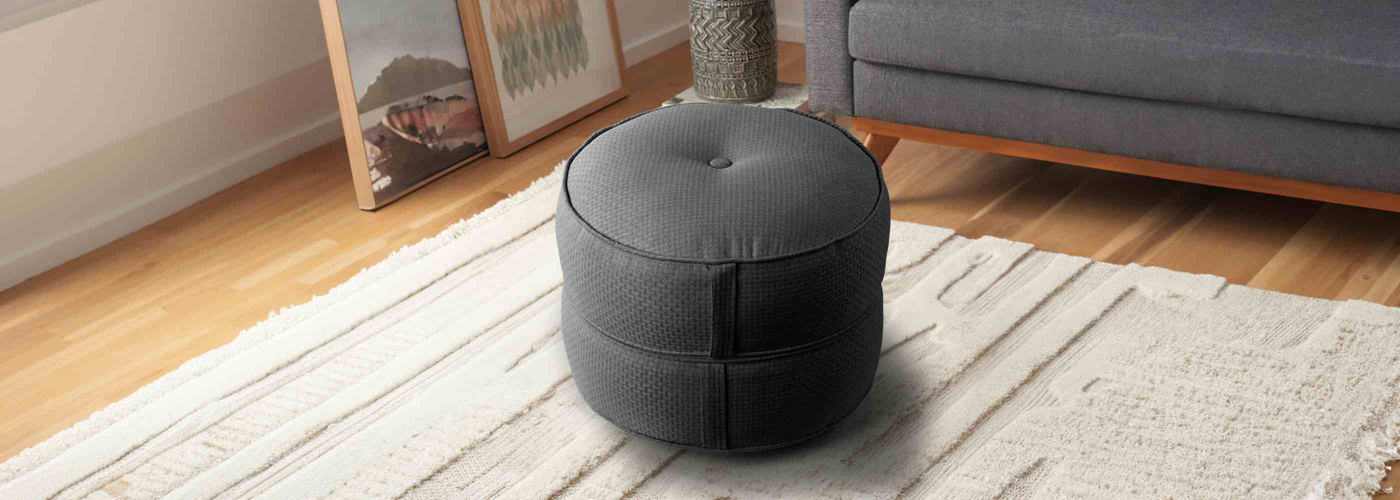 Living Room Round Pouf Ottoman has soft touch to sit or rest your feet.
