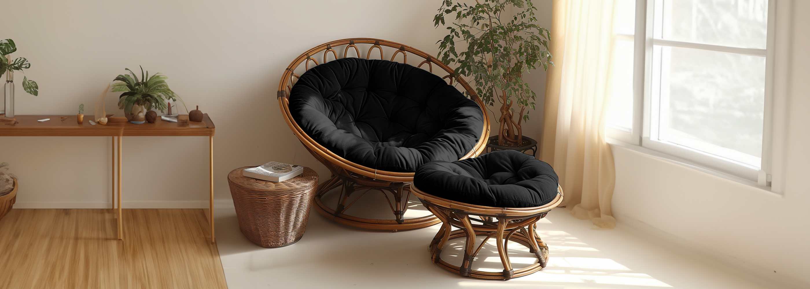 Outdoor Papasan seat cushions have strong and delicate stitching with lock-stitched seams and triple-stitched ties.